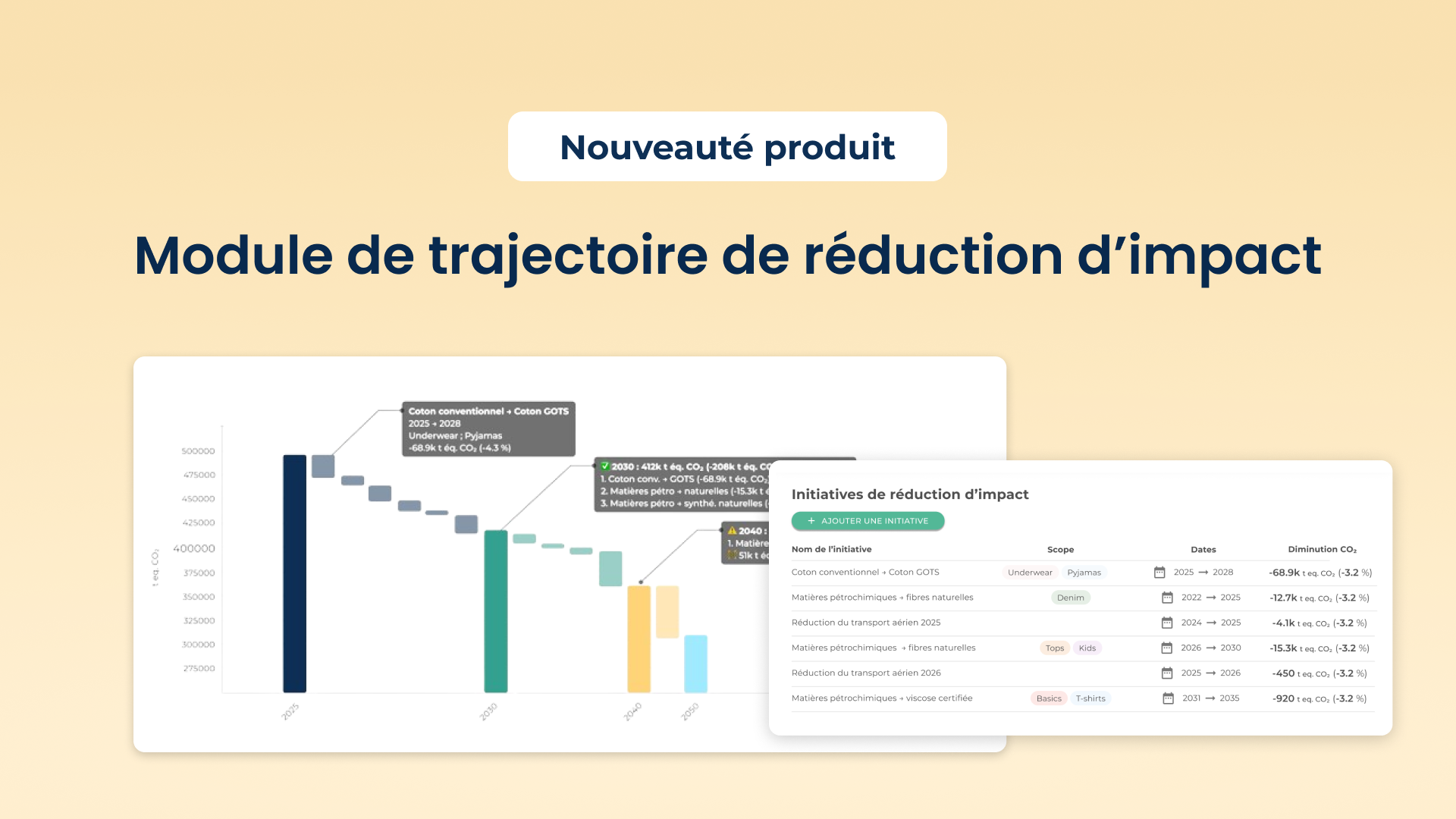 Chaque initiative affiche instantanément son impact sur le périmètre visé et sur l’impact global de votre marque, vous permettant de prioriser les actions à mettre en place.
